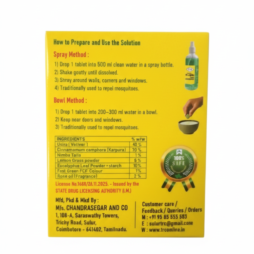 - AYURVEDIC FORMULATION: Water-soluble mosquito repellent effervescent tablets prepared using traditional Ayurvedic ingredients and modern effervescent technology for natural mosquito protection